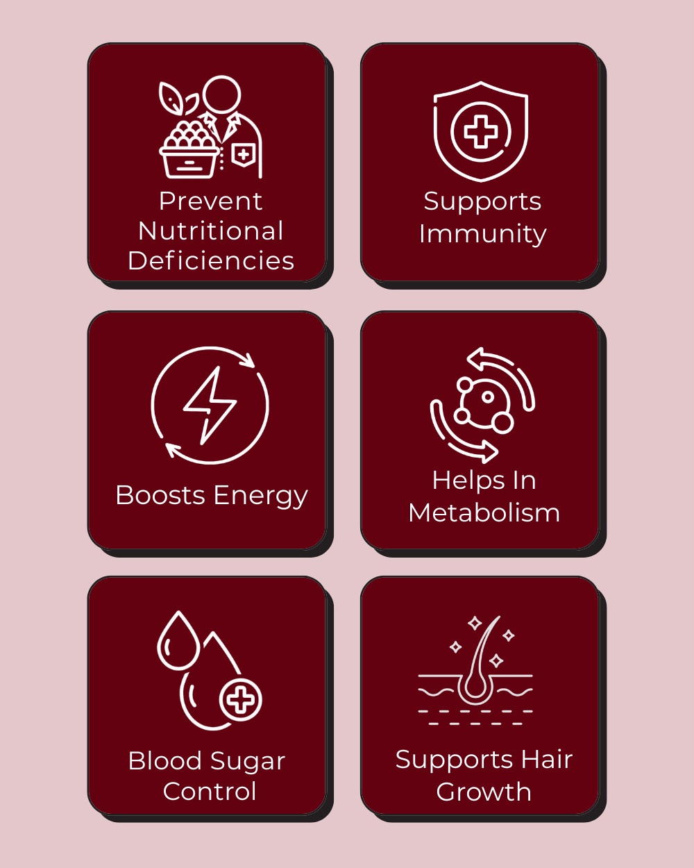 Daily Nutrition Support: A balanced blend of essential vitamins and minerals helps meet daily nutritional needs and supports overall vitality.