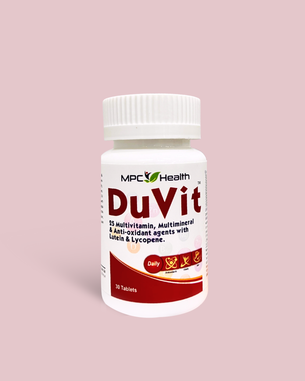 DuVit Tablets are a complete daily multivitamin and multimineral formula designed to support overall health, energy, and immunity. Packed with 25 essential vitamins, minerals, and antioxidants.