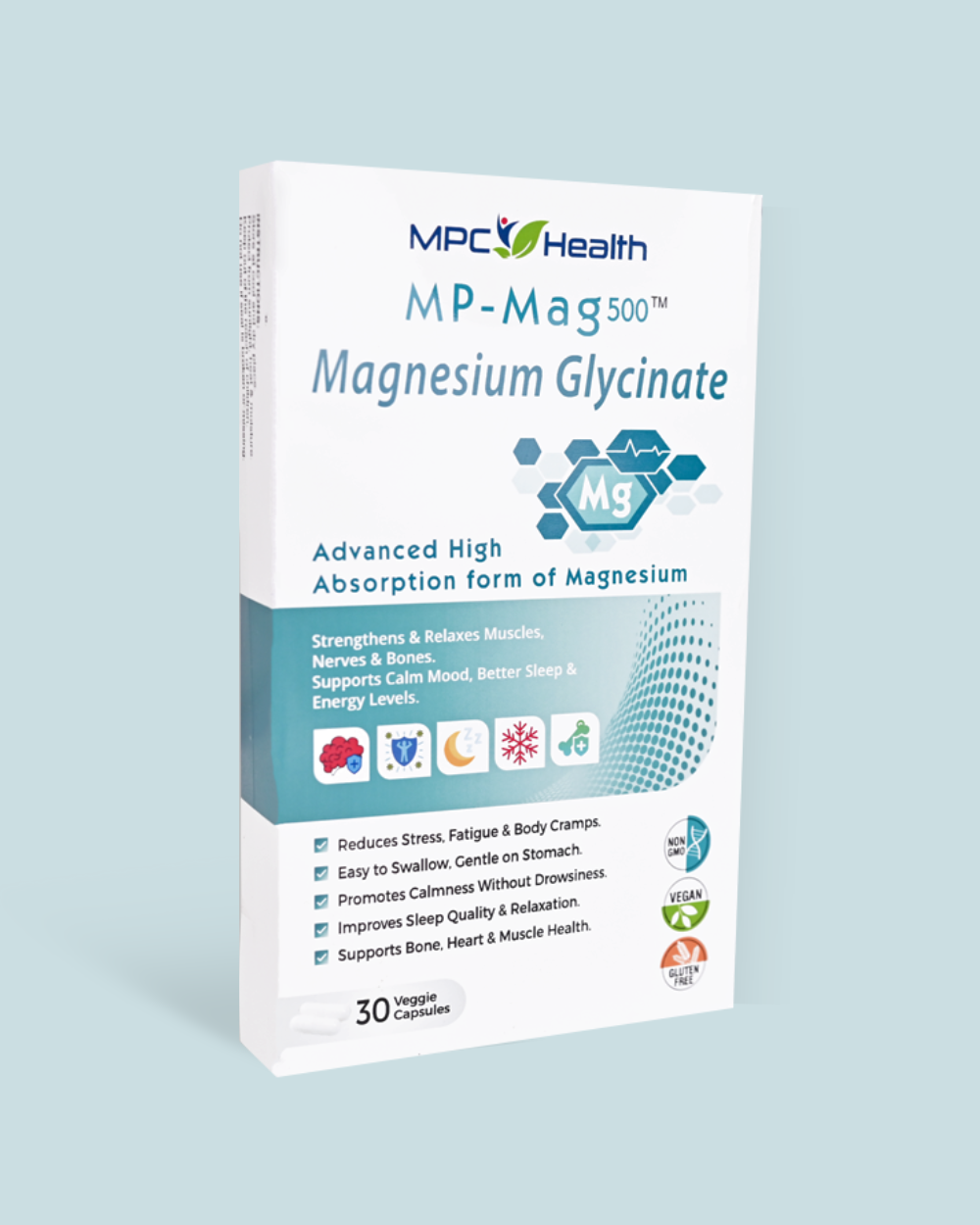 MP-Mag 500 Magnesium Glycinate is designed to support relaxation, muscle health, and overall daily balance. With a highly absorbable and gentle form of magnesium, it helps your body stay calm, strong, and energized without upsetting your stomach.