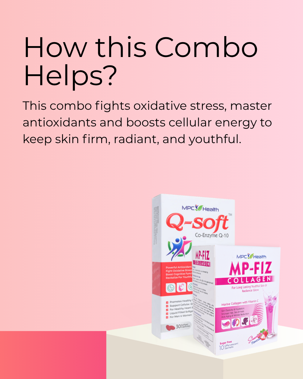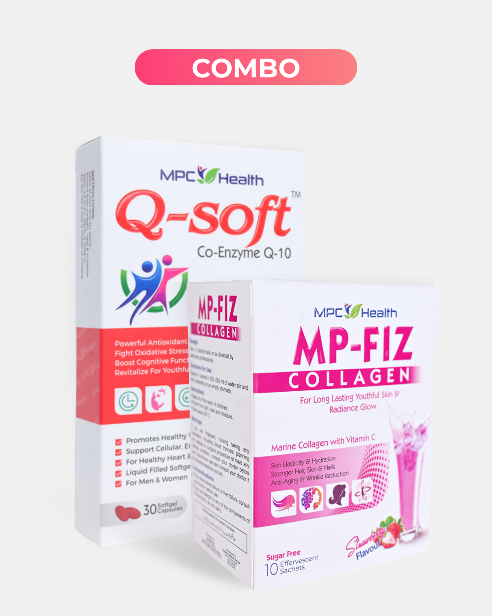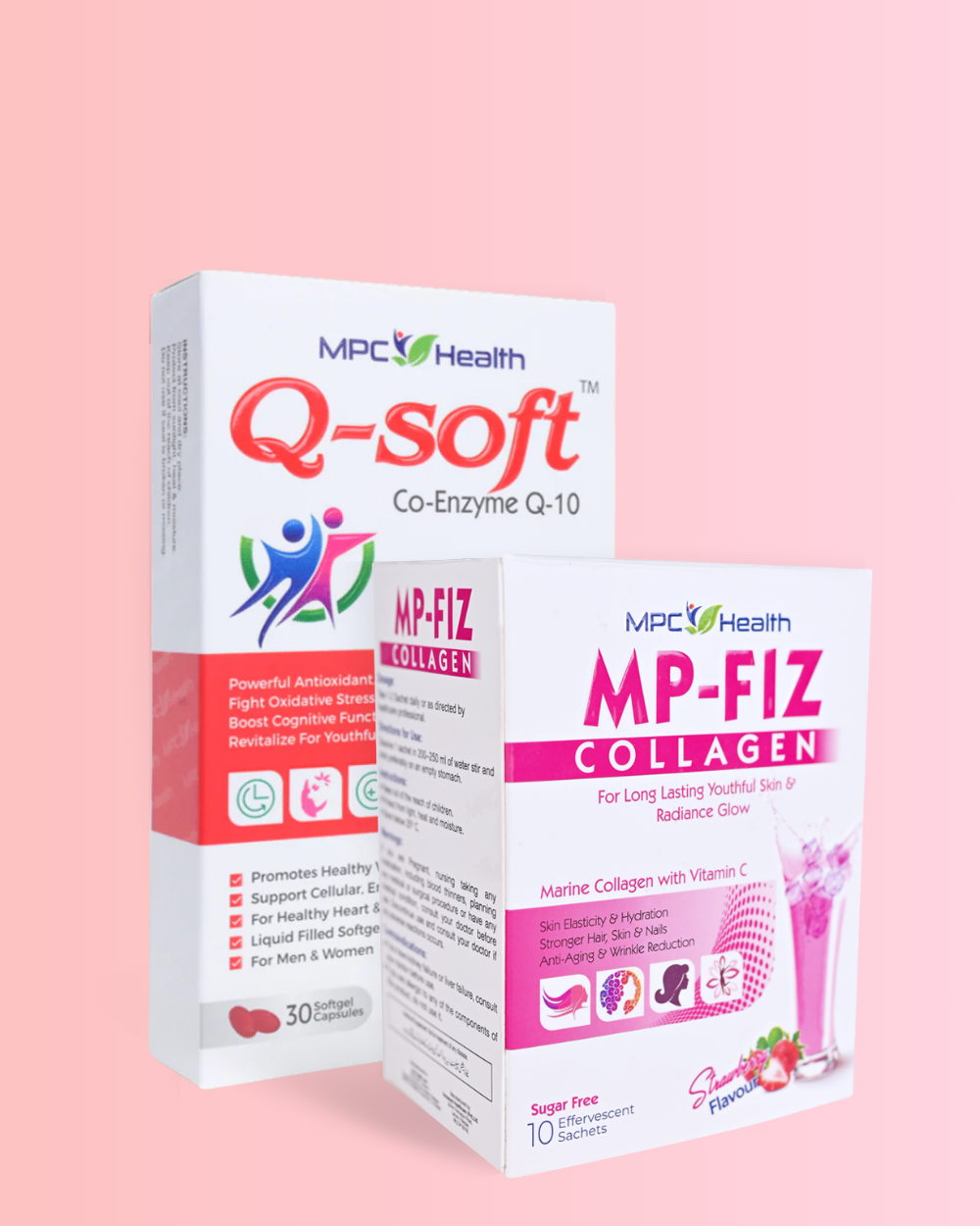 MP-Fiz focuses on collagen restoration and deep hydration, giving your skin firmness and glow, while Q Soft strengthens skin cells and defends them against free radicals for long-lasting youth and vitality.